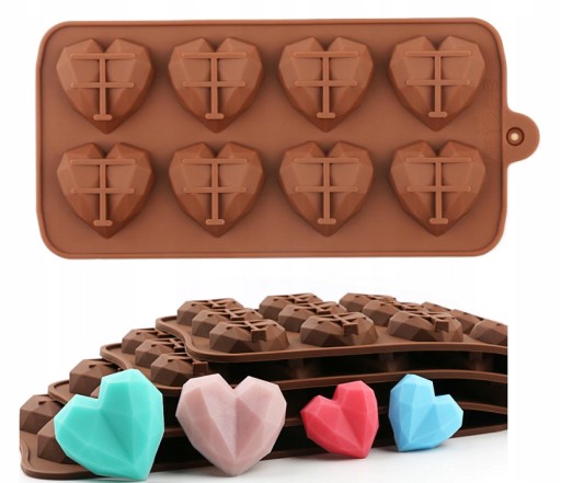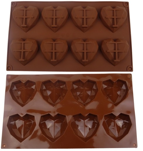 Foremki posiadają pola uformowane w kształcie SERC, które ułatwiają uzyskanie pożądanego kształtu serca. Z dwóch uzyskanych półkul można sbtwizyć ciastko w kształcie 3D.