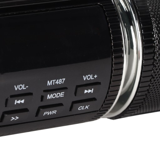 ✔️1. Charakterystyka: Głośnik motocyklowy Bluetooth ma wbudowany wzmacniacz cyfrowy, obsługuje gniazdo audio AUX 3,5 mm, USB i karty pamięci (brak w zestawie), format MP3, radio FM i wyświetlacz zegara cyfrowego.