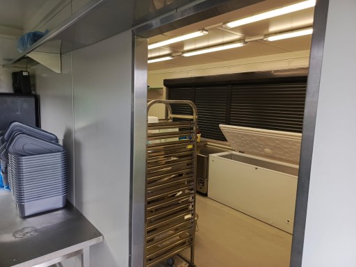 -Budynek mobilny nowy -6mieś (skład 2 kontenerów wyprodukowanych od podstaw z solidnej ramy oraz ścian z płyty warstwowej 100mm,dach 200mm, podłoga 200mm, które można przewozić w dowolne miejsce) . Budynek zaprojektowany tak aby mógł pełnić funkcję również punktu bezpośredniej sprzedaży lodów prosto z produkcji - rolety elektryczne w oknach sprzedażowych