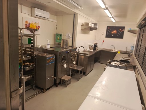 -Zmywalnia wyposażona w zmywarkę kapturową , stół podawczy i odbiorczy