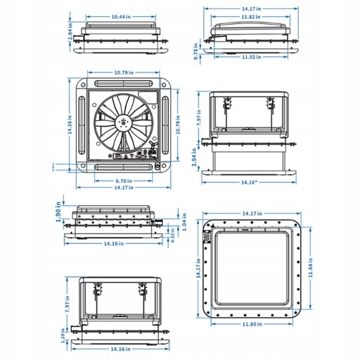 ⭐Wymiary wentylatora: Ok. 360x360x120mm / 14,17x14,17x4,72 cala