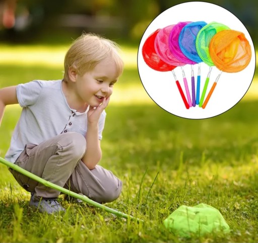 Trzon siatki wykonany jest z metalu, zakończony antypoślizgową rączką. Atutem jest możliwość regulowania długości. Obręcz siatki wykonana jest z metalu. Siatka zachęci dzieci do zabaw na dworze i poznawania przyrody.