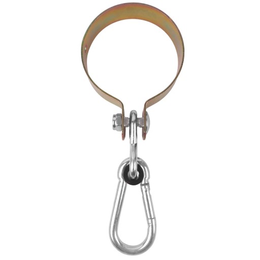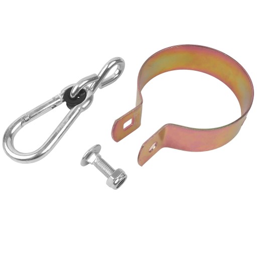 Wysokiej jakości solidne mocowanie do belki ogrodowej: obejma + karabińczyk z teflonem.