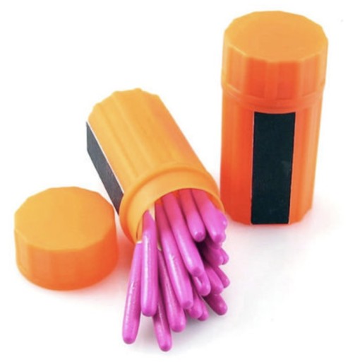 Wodoodporne etui na zapałki w kolorze pomarańczowym. Utrzymuj zapałki suche i chronione. Pionowe żebrowanie zapewnia pewny chwyt w mokrych warunkach. Idealny do outdooru i survivalu.