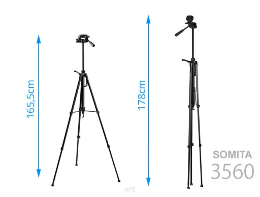 - Maksymalna wysokość statywu (głowica złożona i nóżki we właściwej pozycji): 165,5 cm