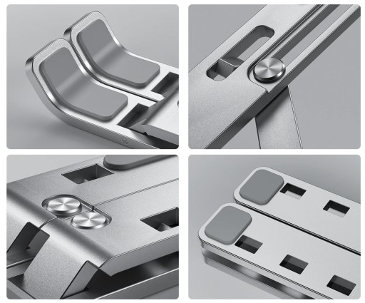 Stojak jest składany, dzięki czemu po złożeniu ma bardzo małe gabaryty. Zmieści się do każdej szuflady czy torby na laptopa.