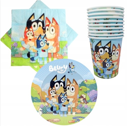 - ZESTAW NACZYŃ JEDORAZOWYCH NA IMPREZĘ Z BOHATERAMI BAJKI BLUEY ,