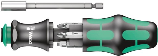 Wykonanie: Ergonomiczna, wielokomponentowa rękojeść Kraftform z zabezpieczeniem przed staczaniem się, magazynkiem na 6 bitów, otwieranym przyciskiem. W ten sposób można wygodnie wymieniać bity.