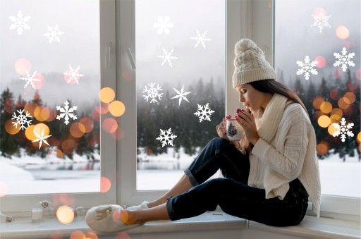 Наклейка «СНЕЖИНКИ» 42 шт. СНЕЖИНКИ, ЗВЕЗДЫ, НАКЛЕЙКА НА ОКНО, РОЖДЕСТВО