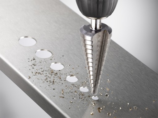 ✅ Wiertło wielostopniowe pozwala na wykonywanie otworów nawet w cienkich blachach bez uprzedniego nawiercania.