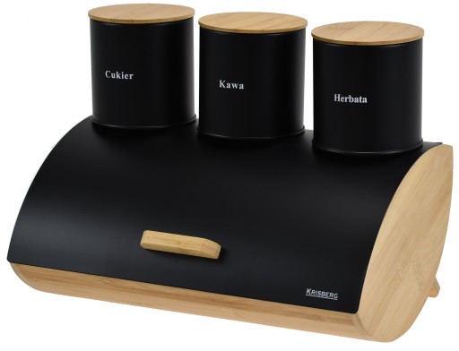 Podstawa chlebaka wykonana z drewna bambusowego, natomiast pokrywa STALOWA w kolorze czarnym matowym.