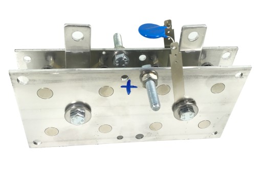 Mostki trójfazowe mają pięć konektorów - PLUS, MINUS, oraz trzy konektory wejściowe do których podłączone są grube przewody z transformatora głównego. W takim przypadku ilość płyt aluminiowych to najczęściej trzy lub sześć.
