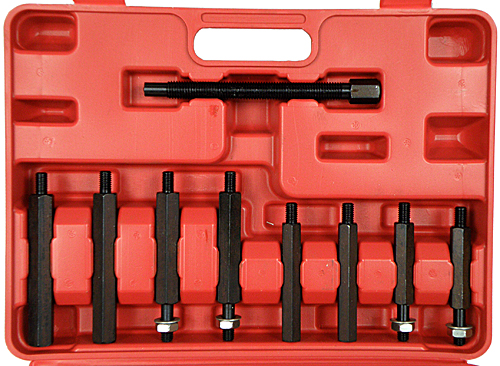 Zastosowanie: Zestaw ma zastosowanie w ściąganiu łożysk, kół zębatych, kół pasowych,wałków i innych zaklinowanych części używanych w mechanice. Umożliwia szybką i łatwą wymianę łożyska nie naruszając konstrukcji maszyny.