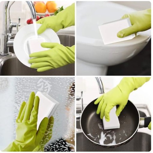 Używając Magicznej gąbki do wyczyszczenia powierzchni nie musimy używać żadnych dodatkowych płynów i detergentów.
