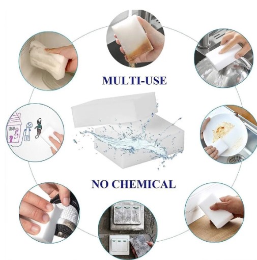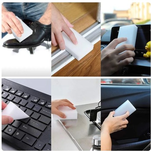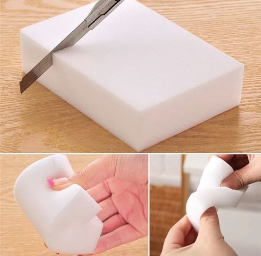 Magiczna gąbka działa jak gumka na brud. Nie potrzebujesz chemii do skutecznego usuwania zabrudzeń. Gąbka nadaje się do powierzchni, które są odporne na działanie wilgoci i ścieranie, gdyż do skutecznego działania magicznej gąbki należy lekko ją zwilżyć, a brud ścierać jak ołówek gumką.