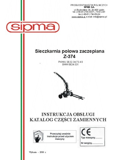 Instrukcja obsługi, katalog części sieczkarni polowej zaczepianej SIPMA Z-374