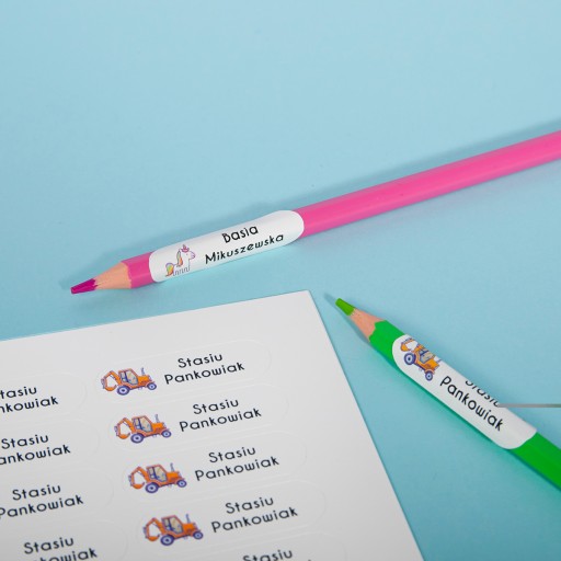 Naklejki na zeszyt, zabawki, podręczniki sprawią, że już nic się więcej nie zgubi. Takie naklejki imienniki są idealnym rozwiązaniem na podpisanie wszystkiego do szkoły i przedszkola. Jest to doskonały sposób na oznaczenie przedmiotów naszych pociech przed pomyłkami oraz zagubieniem.