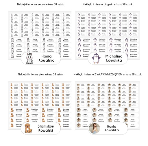 Naklejki imienne na przybory szkolne do szkoły i przedszkola, wodoodporne arkusz 58 sztuk