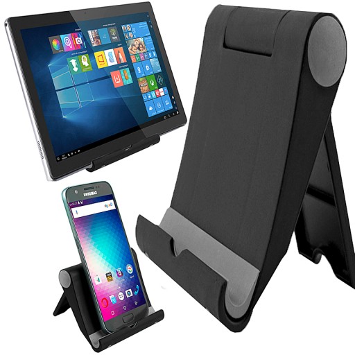 - Uniwersalny stojak / statyw na telefon i tablet z możliwością regulacji nachylenia. Uchwyt posiada specjalne łapki, dzięki czemu urządzenie nie ulegnie przesunięciu i nie wypadnie, a możliwość złożenia i niewielkie rozmiary, pozwalają zastosować uchwyt w każdym miejscu.