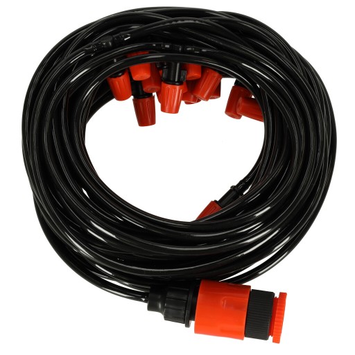 - Wąż możesz umieścić w każdym dowolnym miejscu – na ziemi pomiędzy krzewami, w pobliżu leżaków, w szklarni czy też pomiędzy pieniami drzew. Trytytki dołączone do zestawu z pewnością ułatwią cały proces montażu!