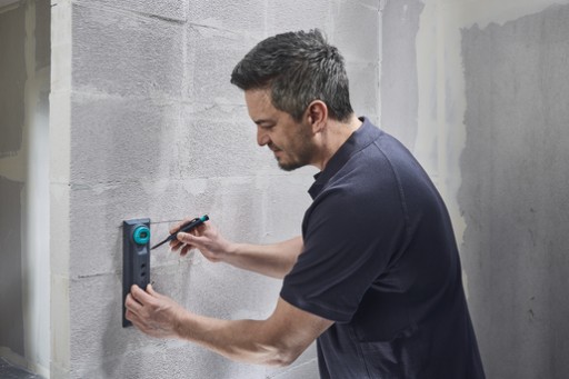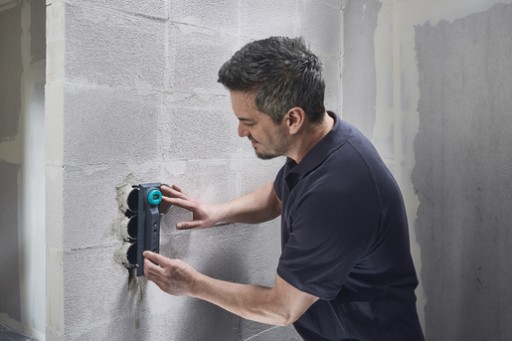 - Obracana o 90° poziomica umożliwia pewne ustawienie szablonu w poziomie i pionie, co pozwala dokładnie zaznaczyć miejsca wiercenia. Również na późniejszym etapie montażu szablon do wiercenia „Elektro” ułatwia ustawianie puszek instalacyjnych i osprzętu oraz umożliwia ich dokładne pozycjonowanie.