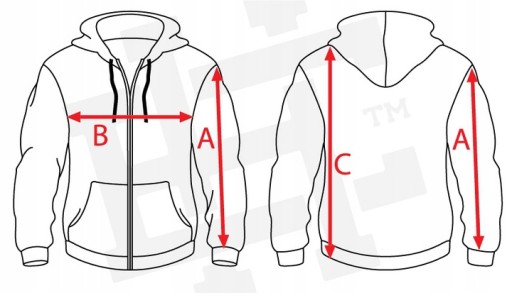 - XL: Długość 63 cm, Szerokość 56 cm, Długość rękawa 64 cm