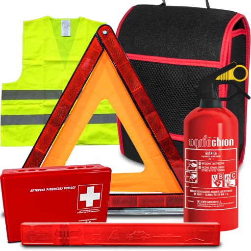 | APTECZKA | GAŚNICA 1KG OGNIOCHRON | KAMIZELKA ODBLASKOWA | TRÓJKĄT OSTRZEGAWCZY | TORBA |
