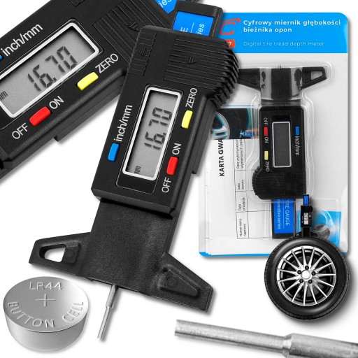 ЦИФРОВОЙ ИЗМЕРИТЕЛЬ ГЛУБИНЫ ПРОТЕКТОРА ШИН + АККУМУЛЯТОР