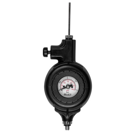 Ciśnieniomierz można podłączyć do pompki i w czasie pompowania sprawdzać na bieżąco aktualne ciśnienie w piłce. Pasujące pompki: Select Mikro z wężykiem i Select pompka Senior z wężykiem