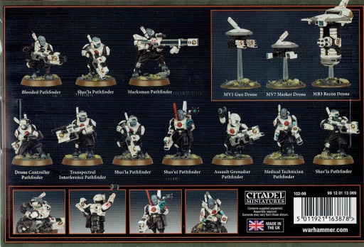 This adaptable kit allows you to build 10 Pathfinders, along with 3 Drones. You can kit them them out as a Pathfinder unit for use in your games of Warhammer 40,000, or customise them to represent the specialists in a Kill Team, including a Drone Controller, Assault Grenadier, Marksmen, Medical Technician, and more. An upgrade frame includes loads of additional options, like bare heads and cosmetic upgrades.