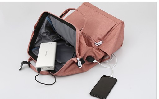 Plecak wyposażony jest w gniazdo USB, dzięki czemu nie ma konieczności wyciągania power banka z plecaka, aby naładować telefon. Uwaga, power bank nie jest częścią zestawu.