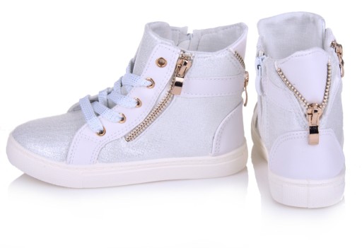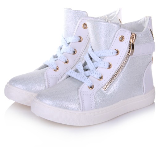 - Zapięcie: suwaki z boku + sznurowadła brokatowe