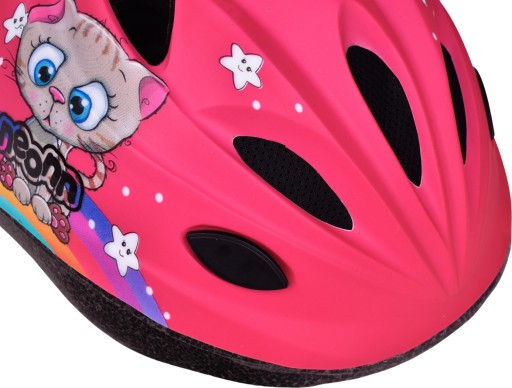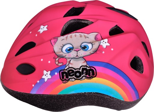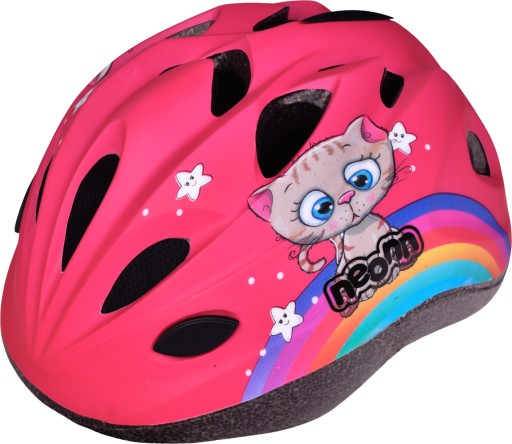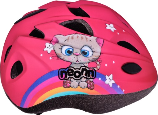 Kask rowerowy dziecięcy Neonn różowy kot z tęczą.