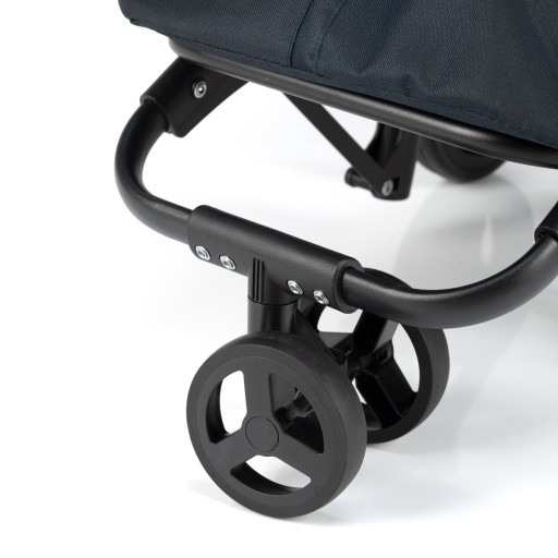 Torba na zakupy wposażony jest w 2 solidne gumowe koła o średnicy 10cm z przodu wózka. Są one obrotowe dzięki czemu łatwiej jest nim manewrować.