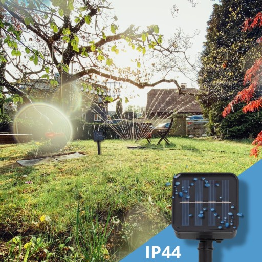 Zarówno panel solarny, jak i girlanda są wodoodporne i odporne na niekorzystny wpływ czynników atmosferycznych. Klasa szczelności IP44 warunkuje, że urządzenie jest odporne na wodę padającą z różnych kierunków, co sprawia, że jest odpowiednie do użytku na zewnątrz lub w wilgotnych pomieszczeniach.