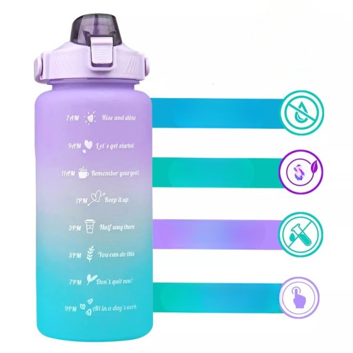 Dzięki unikatowemu inspirującemu cytatowi i znacznikom czasu umieszczonym na butelce, ta butelka wody doskonale nadaje się do pomiaru dziennego spożycia wody, przypominając o pozostaniu nawodnionym i wypiciu wystarczającej ilości wody przez cały dzień.