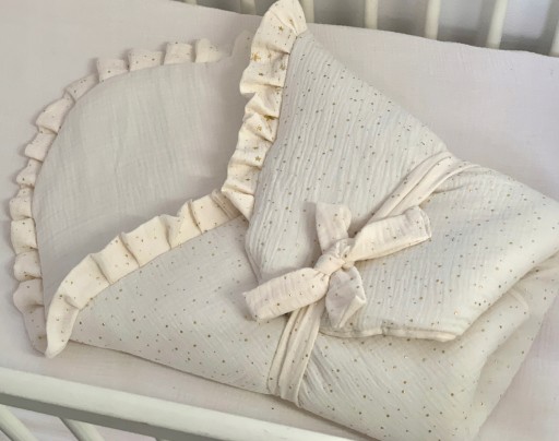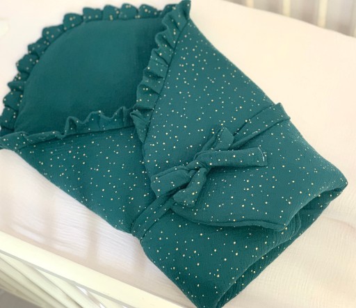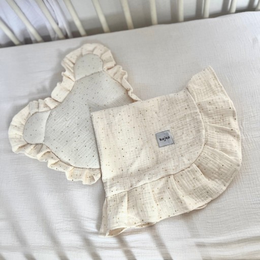 ✅ Rożek ma rozmiar 75x75 cm. Posiada piękną falbankę.