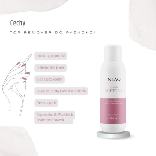 Wydajny, skuteczny i szybki w działaniu INLAQ Aceton Kosmetyczny Remover 500ml to niezastąpiony produkt w Twojej kosmetyczce. Daj sobie i swoim klientom szansę na doskonałe rezultaty i wypróbuj go już teraz!