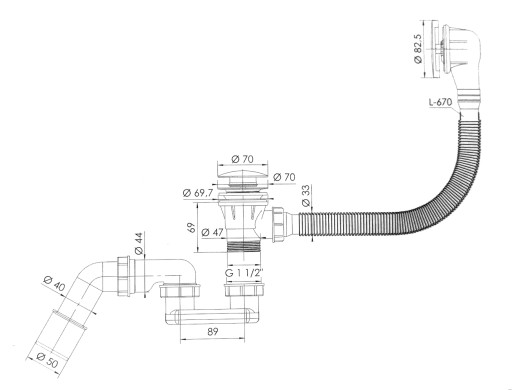 - Ten syfon jest uniwersalny i pasuje do większości wanien o standardowej wielkości.