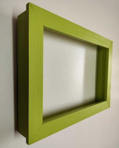 Aukcja dotyczy ramki na rysunki poziome formatu A4 w kolorze ZIELONY GROSZEK z szybką pleksi, rozmiary zewnętrzne ramki wysokość 24cm szerokość 33 cm głębokość 5 cm (głębokość wewnętrzna na prace 4 cm)