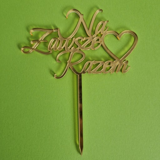 Topper na tort weselny, napis "Na Zawsze Razem" + symbol serca - złote lustro