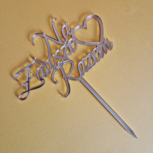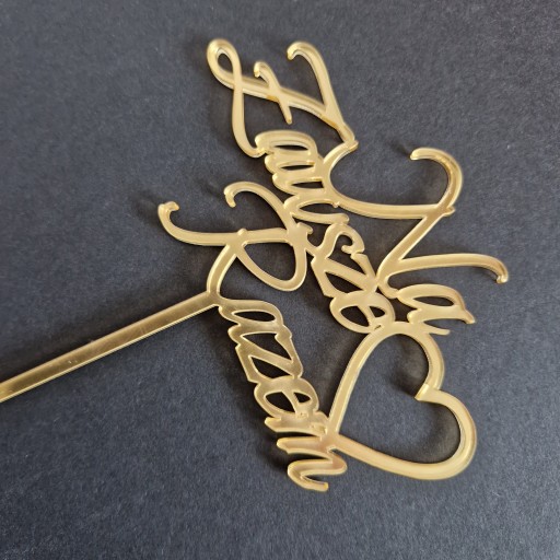 Topper na tort weselny Na Zawsze Razem serce złote lustro