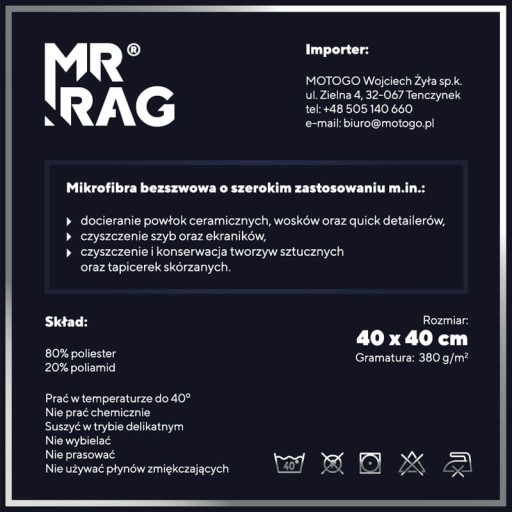 MR RAG dostarcza na Polski rynek różnego rodzaju mikrofibry najwyższej jakości. Ich głównym przeznaczeniem jest kosmetyka pojazdów oraz autodetailing, znajdują one również przeznaczenie w innych dziedzinach.
