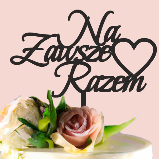 Topper na tort weselny, napis "Na Zawsze Razem" + symbol serca - czarna plexi