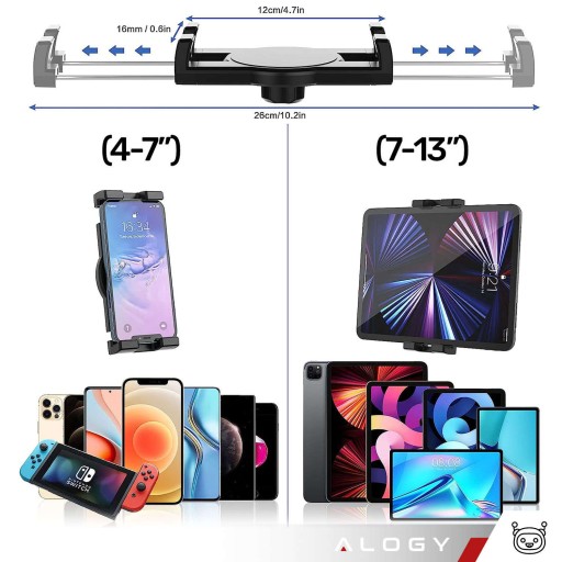 ✅ Pasuje do większości smartfonów i tabletów dostępnych na rynku o przekątnej ekranu od 4 do 13 cali (regulacja zacisków 120-260 mm).