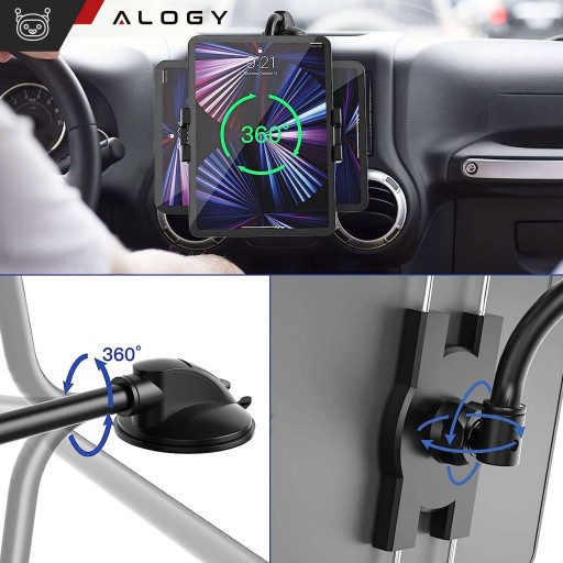 ▶️ Uchwyt samochodowy na tablet telefon kokpit szybę Alogy do auta z długim ramieniem 4-13" czarny