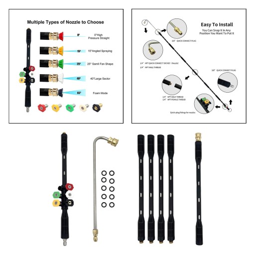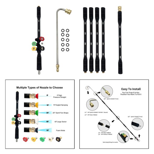 [Doskonały zamiennik] lanca myjki ciśnieniowej o całkowitej długości około 117 cali, może być używana jako przedłużenie lub zamiennik, antypoślizgowa konstrukcja sprawia, że korzystanie z długich tyczek jest bezpieczniejsze. Regulowany klips do przechowywania dyszy, który można przymocować do dowolnego słupka.