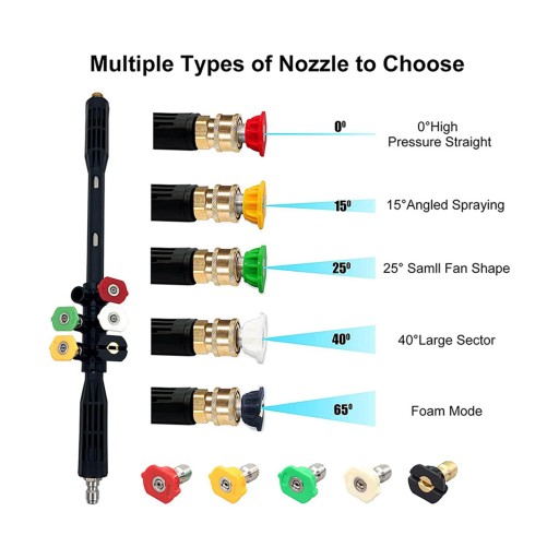 [5 kolorowych końcówek dysz] Lanca do myjki wysokociśnieniowej z końcówkami dyszy natryskowej, które różnią się kątem natryskiwania (0° /15° / 25° / 40° / 65° ) do czyszczonych powierzchni.