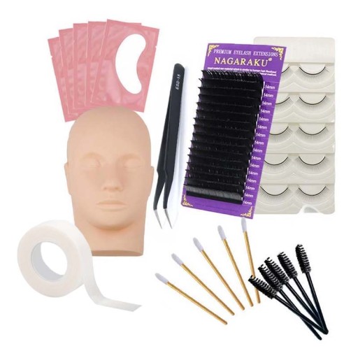 Zestaw Treningowy Do Nauki Przedłużania Rzęs + Rzęsy Nagaraku Premium Mink C 0,10