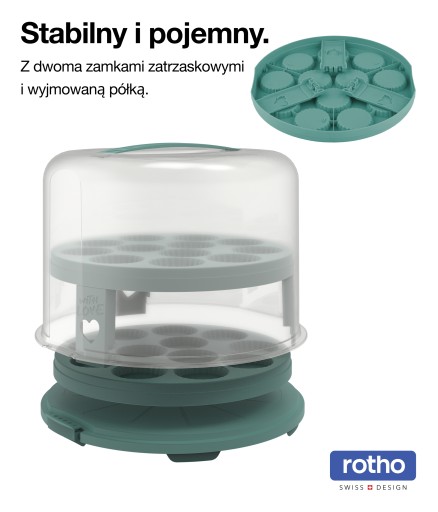 - Mieści do 24 babeczek lub 1 ciasto i 12 babeczek.